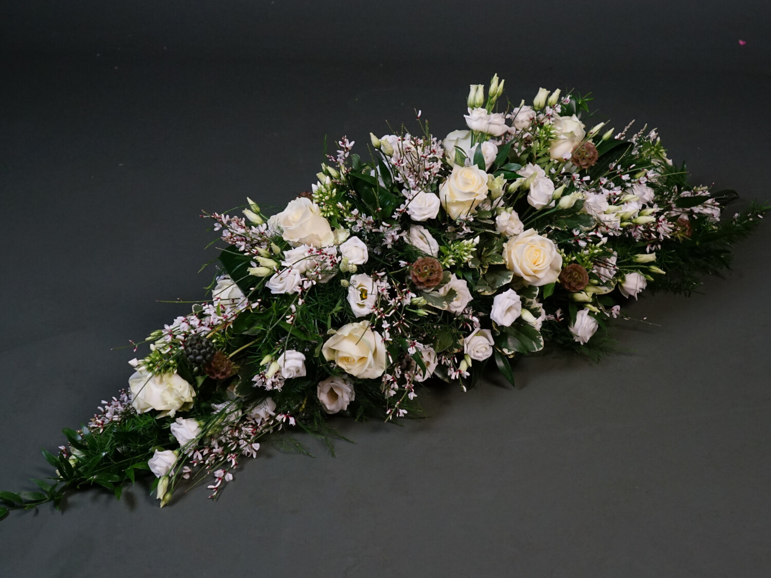 Rouwbloemen hebben de kracht troost te bieden en te dienen als een prachtig gedenkstuk. Door uw wensen te delen, kunnen bloembinders het laatste afscheid vertalen in bloemen, waarmee u op een unieke manier een laatste groet kunt brengen, vergezeld van een persoonlijke boodschap. Met zorg en aandacht kiest u samen de kleuren en soorten bloemen, resulterend in een bloemstuk vol persoonlijkheid en vooral vol liefde.